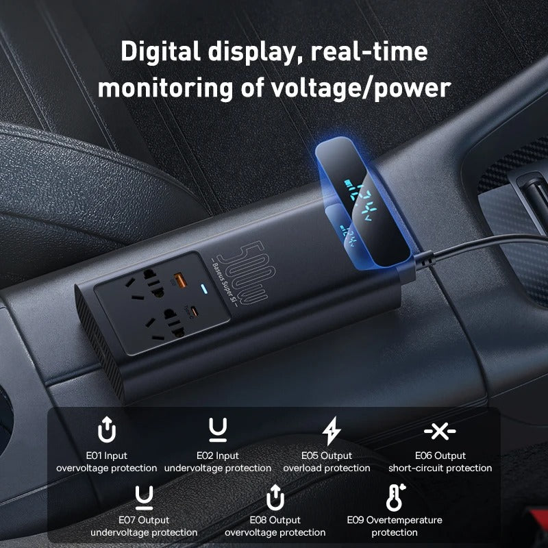 Baseus In-car Inverter Pro 300W - Potencia y Seguridad en tu Auto