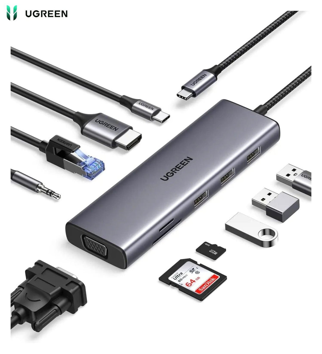 HUB Ugreen 10 en 1 HDMI 4K RJ45 USB 3.0 Lector SD/TF