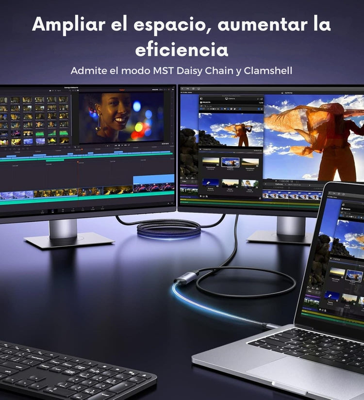 Eleva tu calidad de imagen al estándar más alto con el adaptador UGREEN USB-C a DisplayPort 1.4.Este convertidor permite conectar tu smartphone, tablet o laptop a monitores de alta resolución sin necesidad de drivers, soportando hasta 8K a 60Hz y frecuencias de actualización impresionantes de hasta 240Hz en 4K. Gracias a su tecnología Dynamic HDR, disfrutarás de colores más vivos.