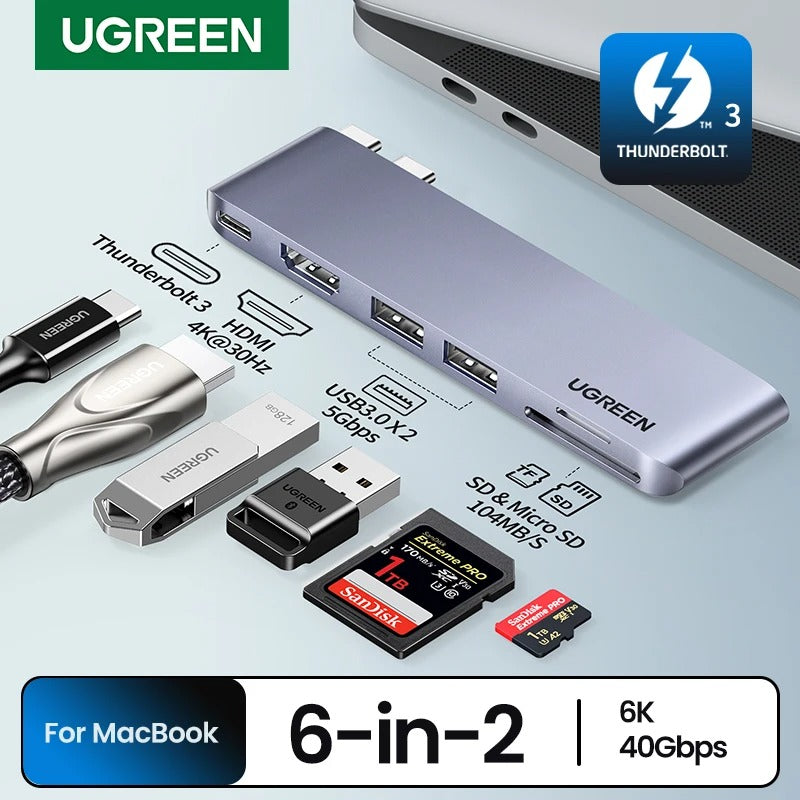 UGREEN USB-C HUB 6 en 2 tipo C a 4K HDMI Thunderbolt 3 USB3.0 para MacBook Pro Air
