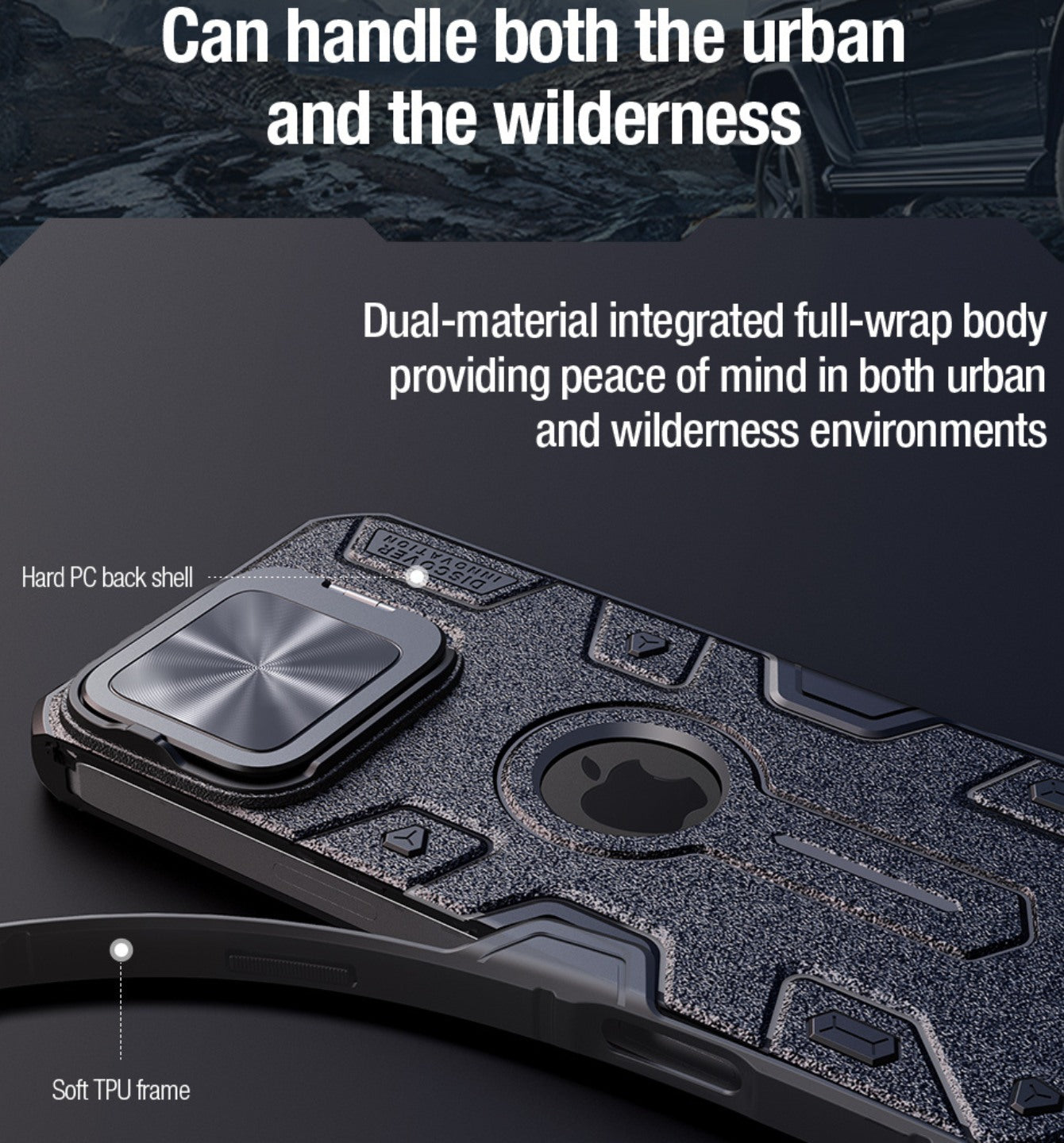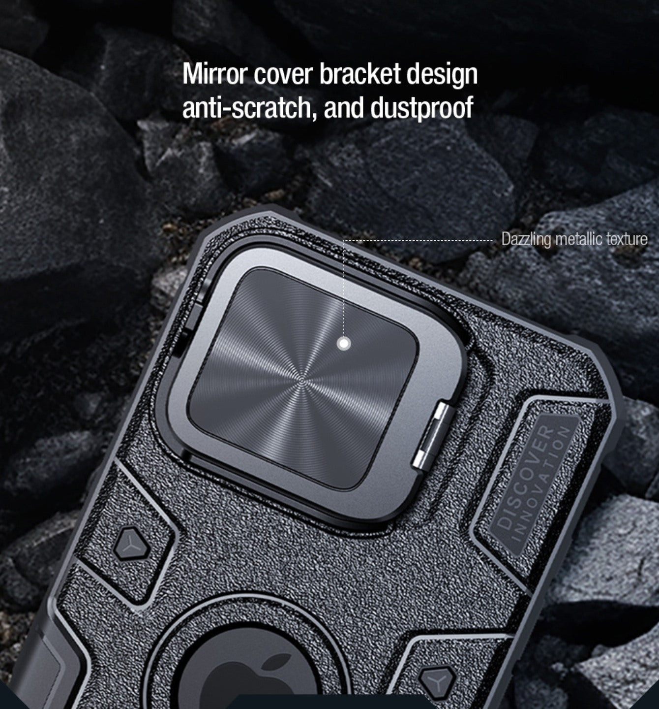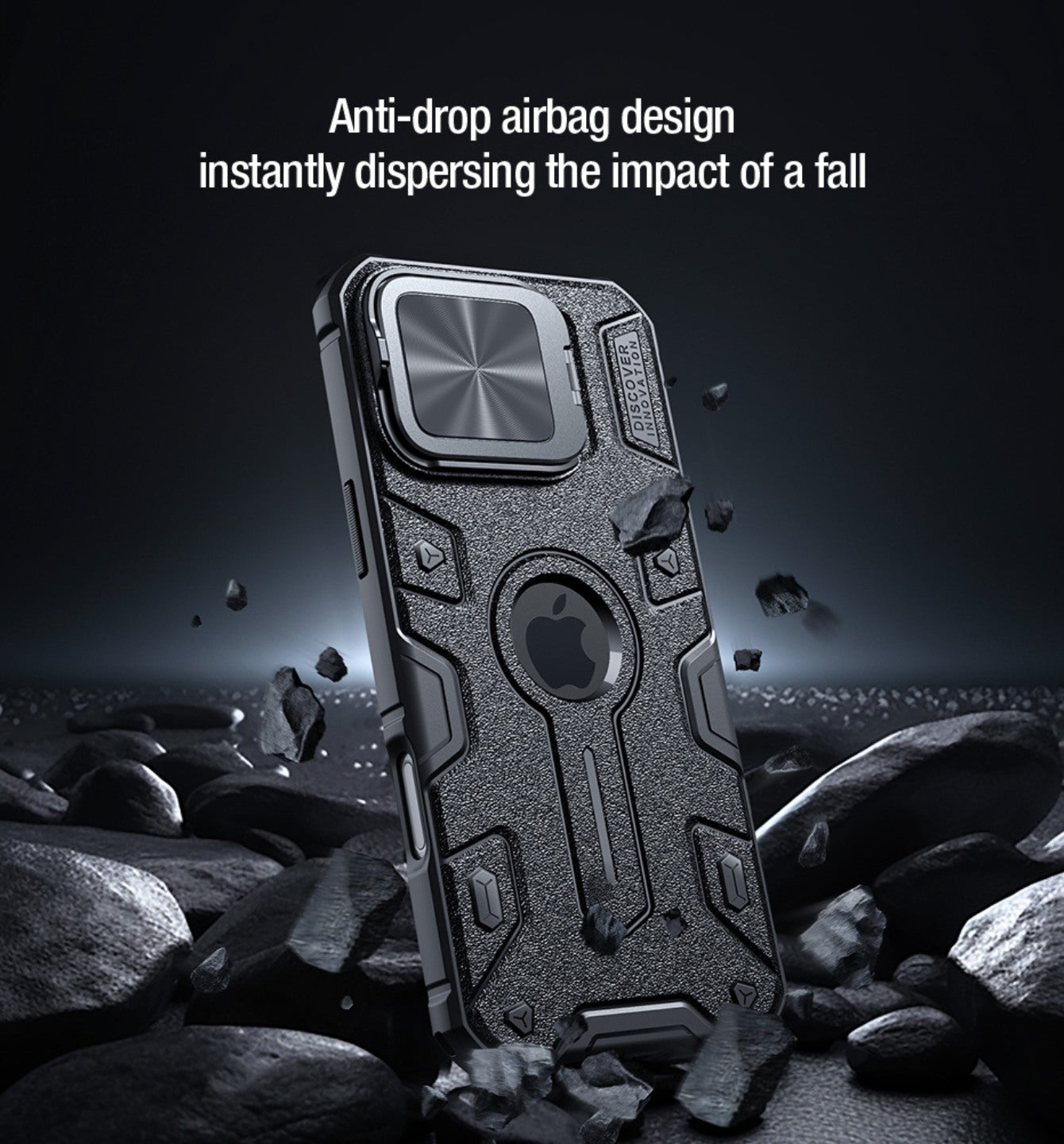 Case CamShield Armor Prop Case cuenta con un exterior texturizado que transmite una sensación de fuerza y resistencia, adecuado tanto para entornos urbanos como exteriores.