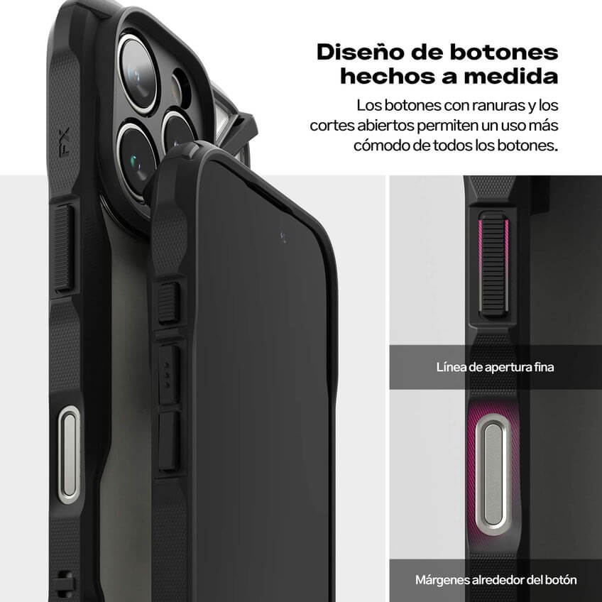 • La funda Ringke Fusion-X combina protección de grado militar con un diseño elegante y funcional, siendo una elección ideal para quienes buscan mantener la integridad y estética de su iPhone 16 Pro.