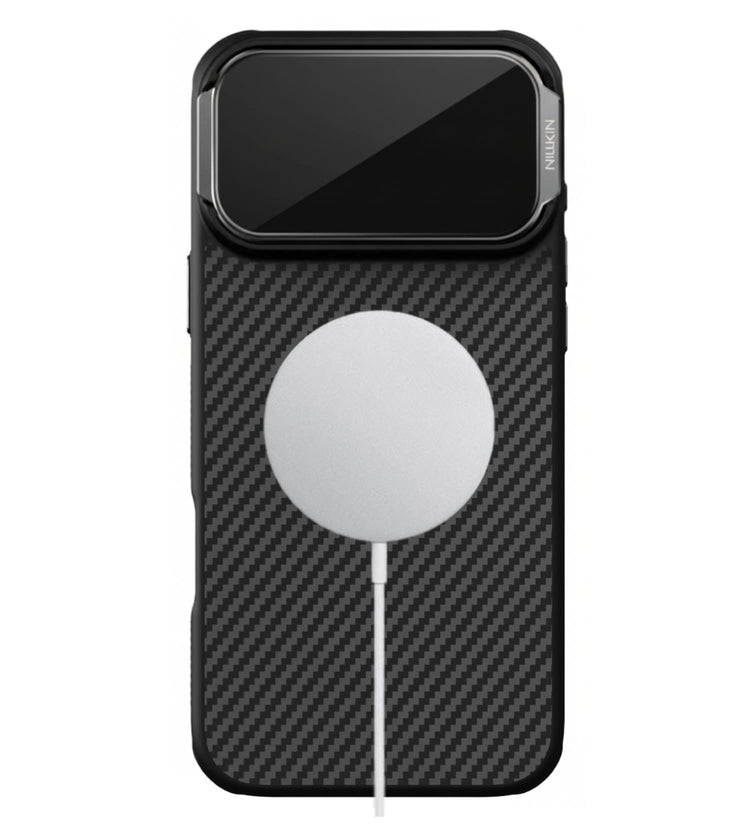 Alta resistencia y diseño sofisticado con la funda Nillkin Kevlar MagSafe. Fabricada con fibra aramida 1500D, incluye una tapa transparente para proteger las lentes, imán MagSafe de alto rendimiento y un soporte integrado para usar tu iPhone 17 en modo manos libres.
