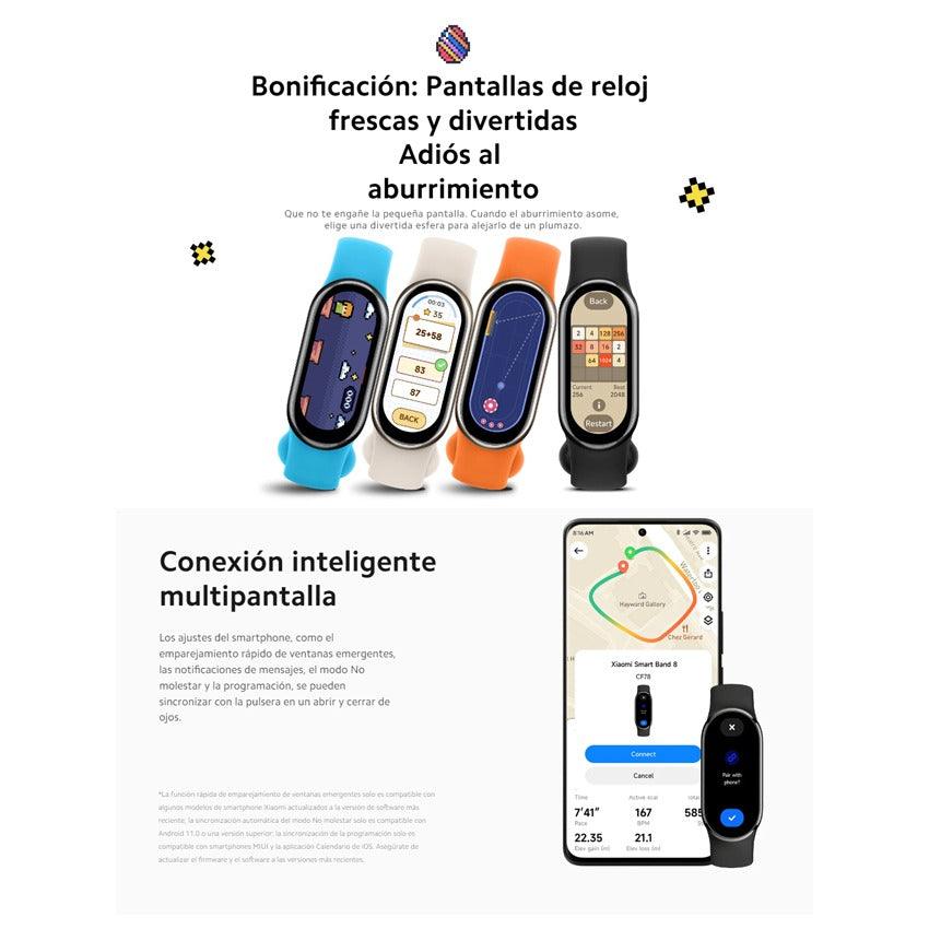 Descubre la Xiaomi Mi Band 8, una pulsera inteligente diseñada para ofrecerte un monitoreo completo de tu salud, múltiples funciones prácticas y un diseño moderno con una pantalla vibrante.