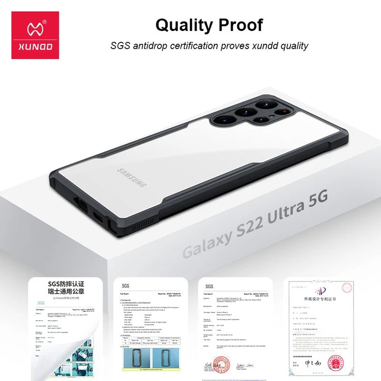 La funda XUNDD Shockproof está diseñada para proporcionar una protección robusta al Samsung Galaxy S22 Ultra, manteniendo al mismo tiempo su estética original.